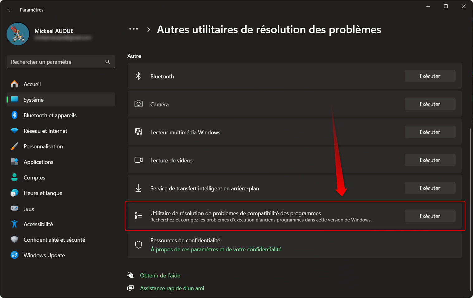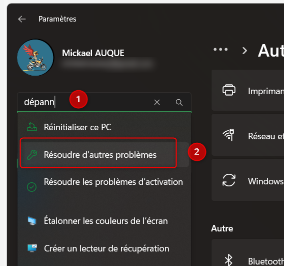 Dans les Paramètres windows, une partie est dédiée au dépannage :